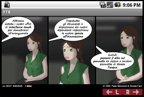 L'applicazione vi permetterà di seguire le strip di FTR direttamente sul vostro smartphone Android, senza nemmeno il bisogno di accendere il computer. Certo, vi perderete gli interessanti (ehm...) e appassionanti (ops...) editoriali di Cymon e Lo-Rez, ma quantomeno potrete scorrere in tutta libertà tutta la produzione del coniglio, dagli albori in bianco e nero della very very classic alle più moderne strip jobs, aggiornati al millisecondo rispetto quanto avviene sul sito!