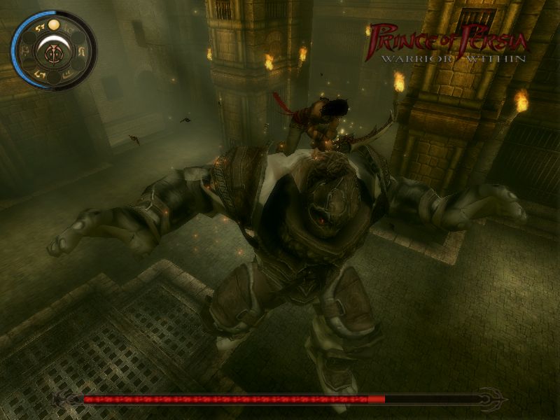 Lo scontro con il Gigante presente nel demo è qualcosa che chiedevo da tempo all'Industria Videoludica, e se funzionasse sono sicuro che sarebbe entusiasmante. In teoria è possibile piroettare tra le gambe del colosso e saltargli sulla schiena, oppure balzare da un muro all'altro fino al soffitto, lanciarsi giù piantando la sciabola nei tendaggi, e poi percuoterlo forte sulla testa... Prince Of Persia 2 promette tutto questo genere di intrattenimento spensierato, ma nella pratica l'IA si inceppa troppo spesso.
