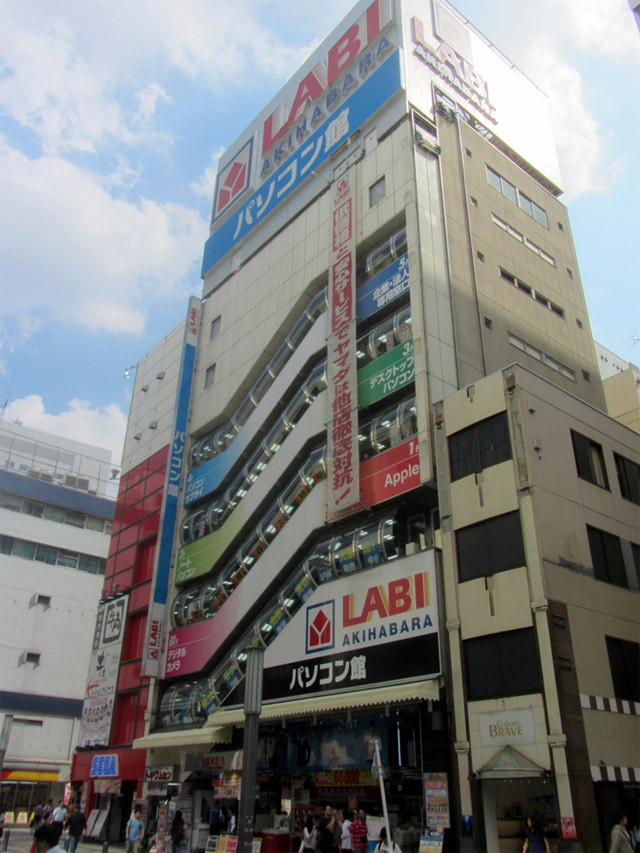 Avanti veloce fino a questo settembre 2014, e svoltando un angolo mi trovo di fronte, inaspettatamente, proprio a quell'edificio così caratteristico del Quartiere Elettrico di Tokyo... quello con le scale esterne che attraversano in diagonale tutta la facciata.